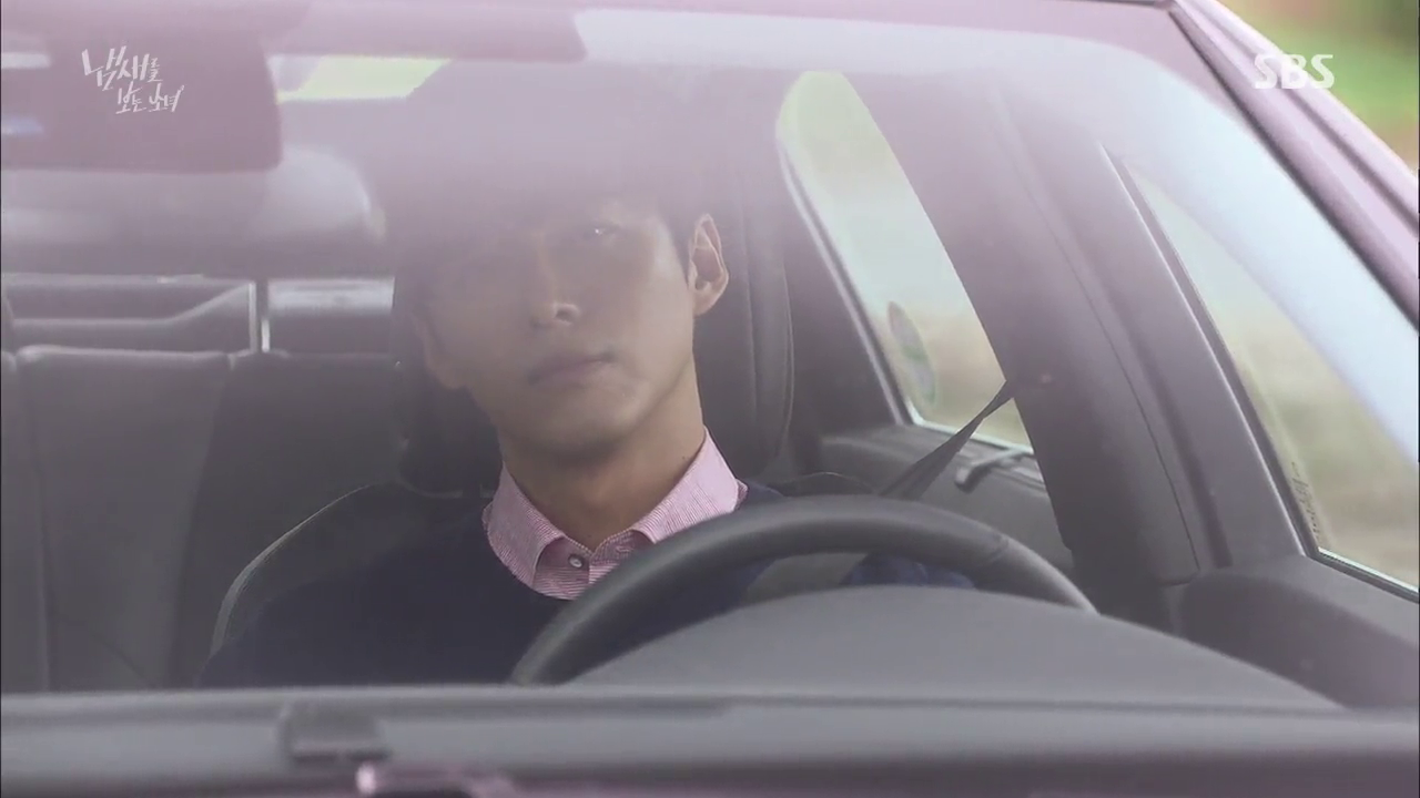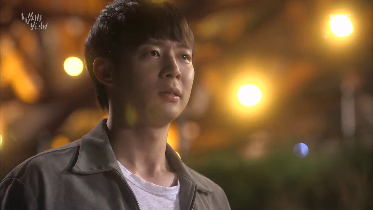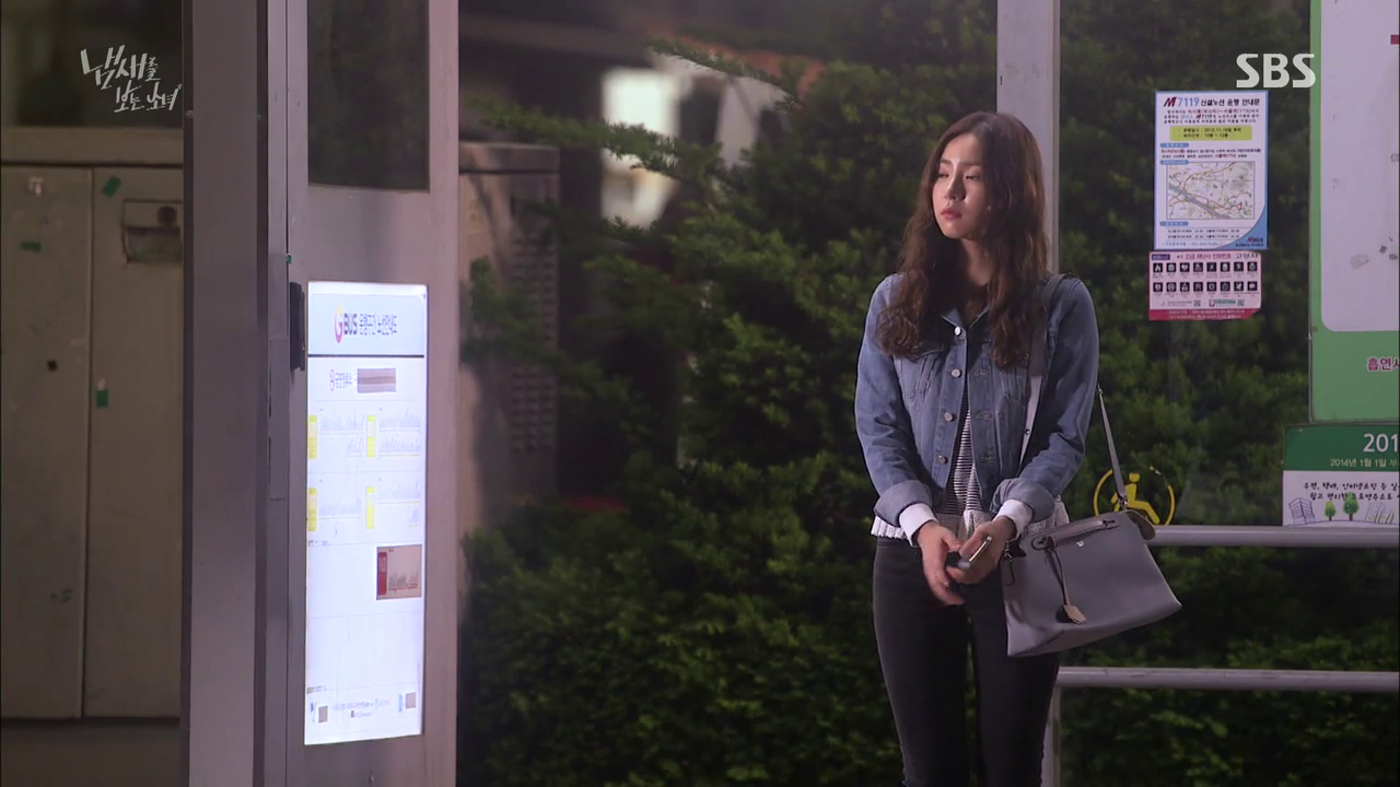 Poor Cho Rim waits at the bus stop for Moo Gak, who is actually just opposite the road. He watches her and reads her messages, but decides to hop on the bus and leaves anyway.